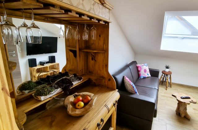 Das Ferienhaus ist das ideale Urlaubsdomizil; es liegt in der Ortsmitte des Winzerdorfes und kann auf eine wechselvolle Geschichte seit dem Jahr 1753 zurückblicken. Es ist grundauf saniert und mit modernester Technologie ausgestattet. In der auf zwei Stockwerken liegenden Ferienwohnung ist auf der rund 130 qm großen Wohnfläche und mehreren Schlafzimmern genügend Platz für bis zu neun Personen. Bild antippen!