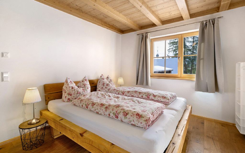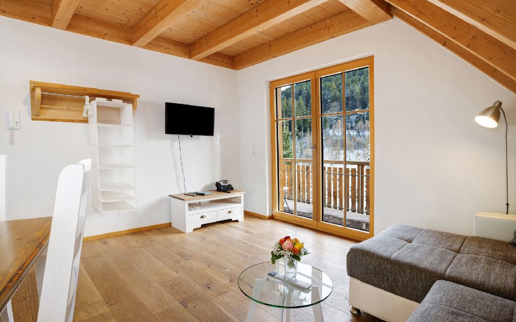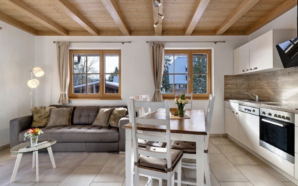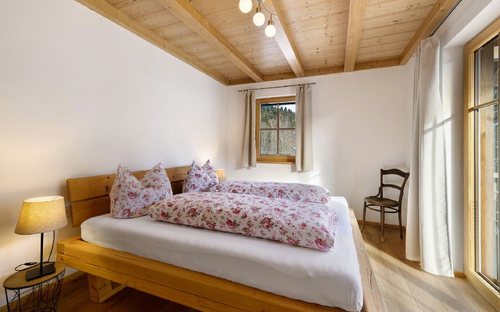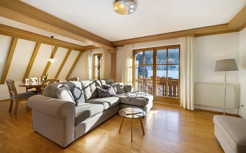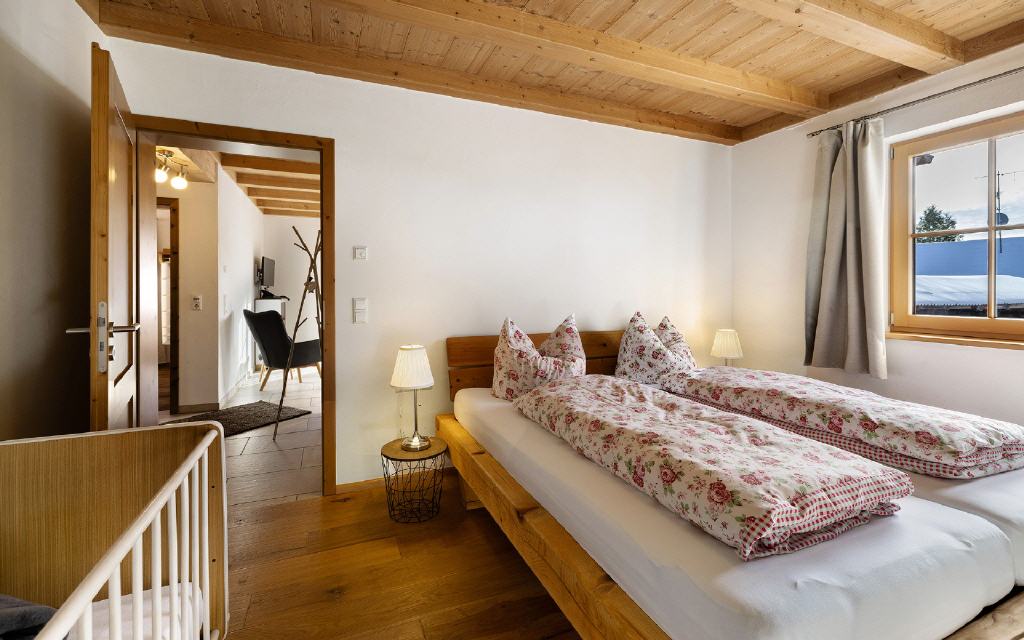 Ferienwohnung Leibgeding: Diese Ferienwohnung hat 2 separate Schlafräume mit je einem Doppelbett, einen Wohn-Essraum mit Küchenzeile und Balkon sowie ein Badezimmer. Größe ca. 60 qm. Preis ab 105 Euro (pro Nacht ab 4 Übernachtungen).
