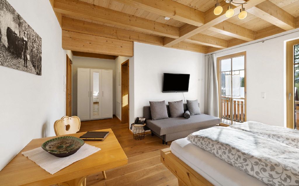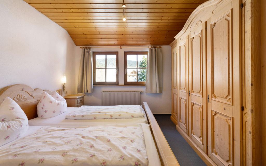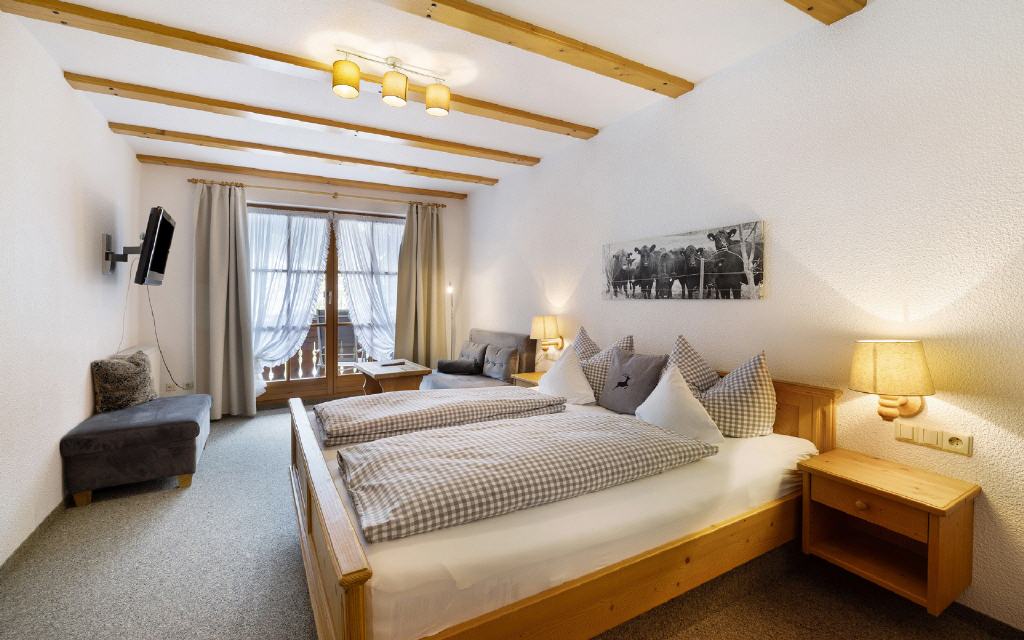 Doppelzimmer Leibgeding: Unsere Doppelzimmer sind mit Dusche, WC, Telfon, TV und Balkon mit herrlichem Ausblick ausgestattet. Größe ca. 20 qm. Preis ab 52 Euro (pro Nacht ab 4 Übernachtungen).