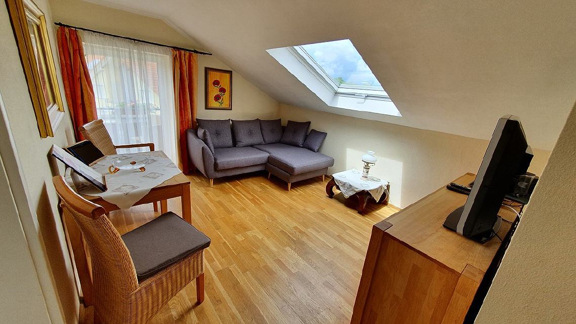 Appartement 02: ca. 68 qm im DG, bestehend aus Doppelzimmer, Einzelzimmer, großem offenem Wohnbereich mit Küche und Essecke, Dusche / WC.