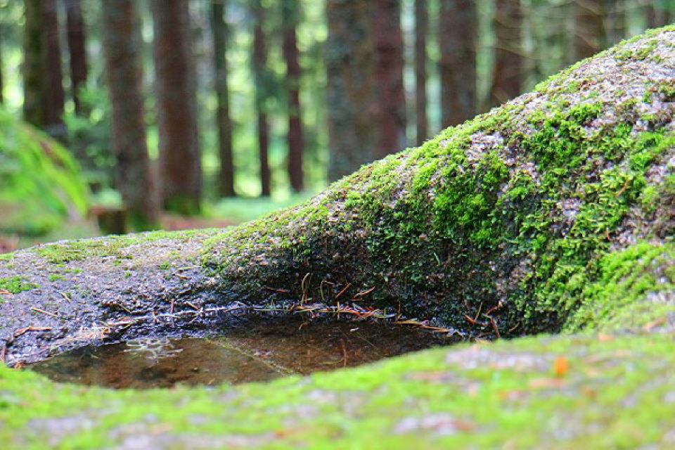 1. Trachtenbrunnen. Nach etwa 200 Metern vom Haus des Gastes in Richtung Mühlenweiher finden wir einen großen Restling. Dieser Stein ist der Bevölkerung auch als “Heidenstein” oder “lebendiger Stein” bekannt. Er wurde vom örtlichen Trachtenverein zum “Trachtenbrunnen” gemacht. Auf ihm befindet sich auf der Vorderseite eine Schale mit Ablauf und auf der Rückseite direkt unter dem Einlauf zwei flache, ineinander liegende Schalen.