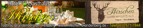 Unterkünfte und Reiseführer Hochschwarzwald: Bernau | Bonndorf | Breitnau | Dachsberg | Eisenbach | Feldberg | Friedenweiler | Furtwangen | Grafenhausen | Gütenbach | Häusern | Hinterzarten | Höchenschwand | Ibach | Lenzkirch | Löffingen | Sankt Blasien | Sankt Georgen | Sankt Märgen | Sankt Peter | Schönwald | Schonach | Schluchsee | Titisee-Neustadt | Todtmoos | Todtnau | Triberg | Ühlingen-Birkendorf | Vöhrenbach | Wutach |