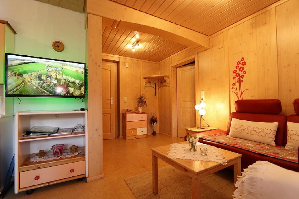 Im Urlaub zurück zur Natur... Mit der Natur in Einklang leben. – In unserem Haus wurden die beiden Nichtraucher-Ferienwohnungen mit heimischem Fichtenholz ausgebaut. Dadurch wurde eine Wohnqualität erreicht, die ein ganz besonderes Wohlbefinden garantiert. Machen Sie sich selbst ein Bild über unsere beiden gepflegten und wiederholt vom DTV klassifizierten ****- Ferienwohnungen und unsere wunderschöne Heimat. Überall pflegeleichter, hygienischer Fliesen- und Parkettboden. Die reichhaltig ausgestattete Küche wird keinen Wunsch auslassen, damit Sie es im Urlaub so bequem wie möglich haben! In schöner Bettwäsche und auf hochwertigen Matratzen werden Sie kuschelige Nächte verbringen und erholsam schlafen. Auf Wunsch zusätzliche Decken und Kissen. Selbstverständlich haben wir im Bad flauschige Dusch- und Handtücher bereitgelegt, ebenso ist ein Föhn vorhanden. Telefon, SAT-TV und eine CD-MC-Stereoanlage komplettieren die Wohnungen.
