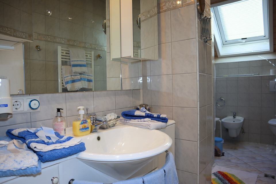 mit Dusche, WC, Bidet, Urinal-Toilet, Waschbecken