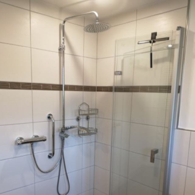 Modernes barrierefreies Bad mit WC und Raindance-Dusche