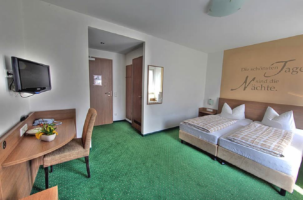 Wir bieten Ihnen einen angenehmen Aufenthalt in modernen Gästezimmern mit Dusche / WC, Föhn, Balkon, TV, Schreibtisch, Lan und W-Lan. Sie werden sich auf unserer großzügigen Liegewiese direkt am Haus wohl fühlen.