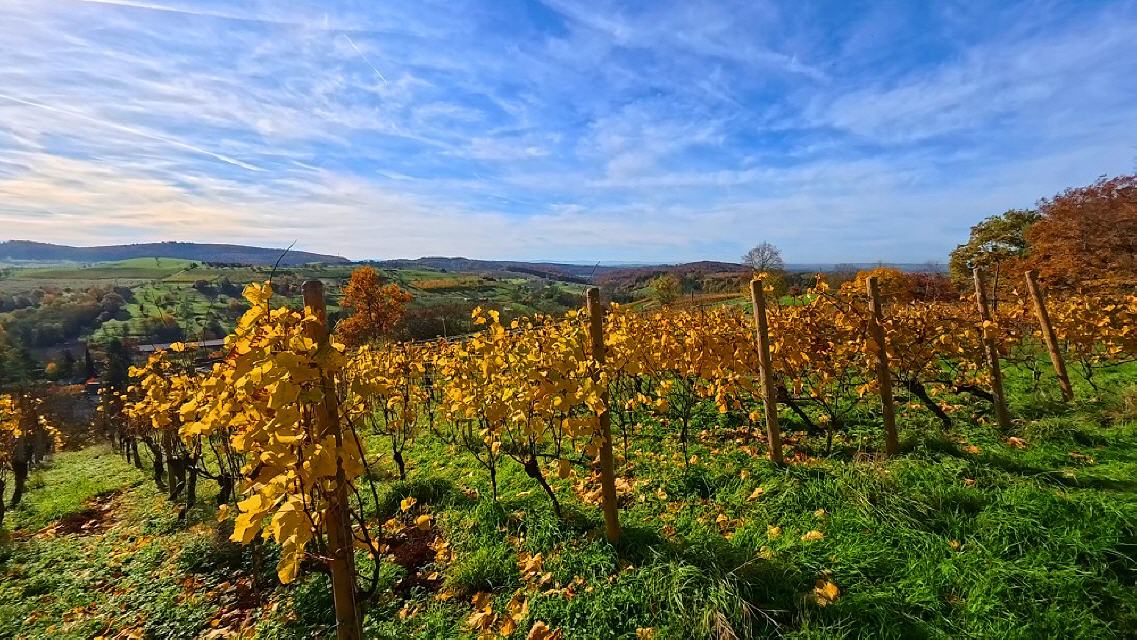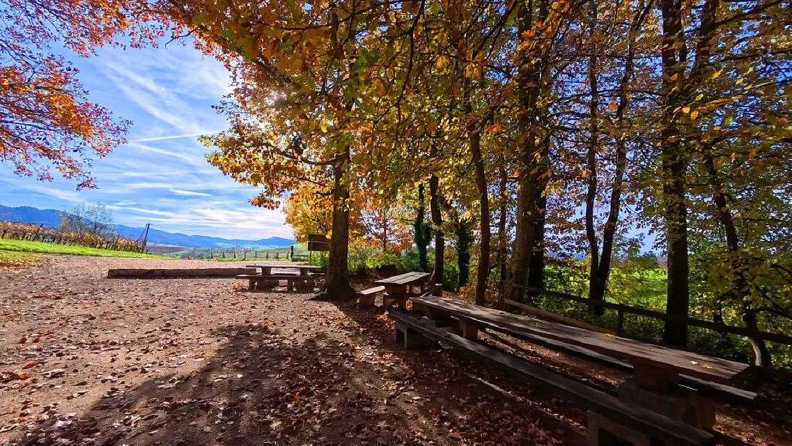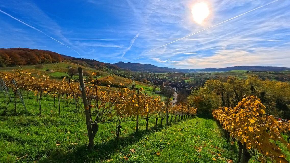 Wer das Markgräflerland liebt, seine Menschen und die einzigartige Vorbergzone des Schwarzwaldes mit den herrlichen Wäldern sowie den im Herbst leuchtenden Weinbergen, wird auf dieser Rundwanderung garantiert auf seine Kosten kommen. Die Tour bietet weite Aussichten bis zu den Vogesen, aber auch geheimnisvolle Ecken wie beispielsweise das Rheintal. Damit ist nicht die Oberrheinebene gemeint, sondern ein kleines Tal beim Dorf Feldberg, das nichts gemein hat mit dem berühmten Feldberg im Hochschwarzwald. Unterwegs sind einmalig schöne Weingüter und Bauernhöfe zu sehen.