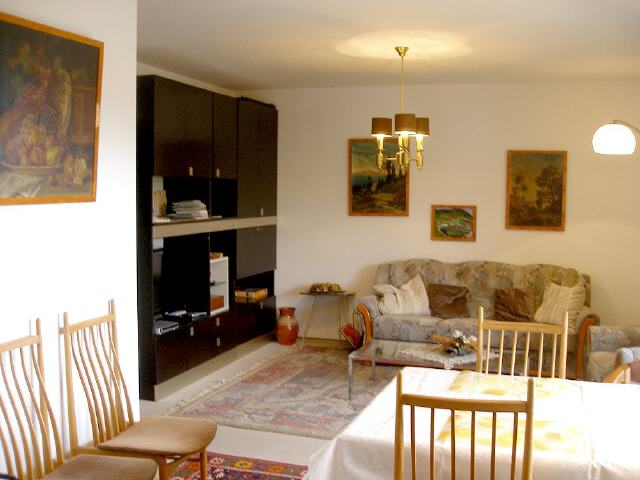 Das Gästehaus liegt in ruhiger, sonniger Halb-Höhenlage, direkt am Golfplatz zwischen der Wasserstretanlage und dem Aussichtspunkt bei der Kapelle “Maria Hügel”. Vermietet werden 2 große Ferienwohnungen für je 2 bis 4 Gäste. Und 4 kleine, preiswerte Ferienappartements für je 1 bis 2 Personen. Alle Ferienwohnungen und Apartments haben einen Balkon oder eine Terrasse. Bild antippen!